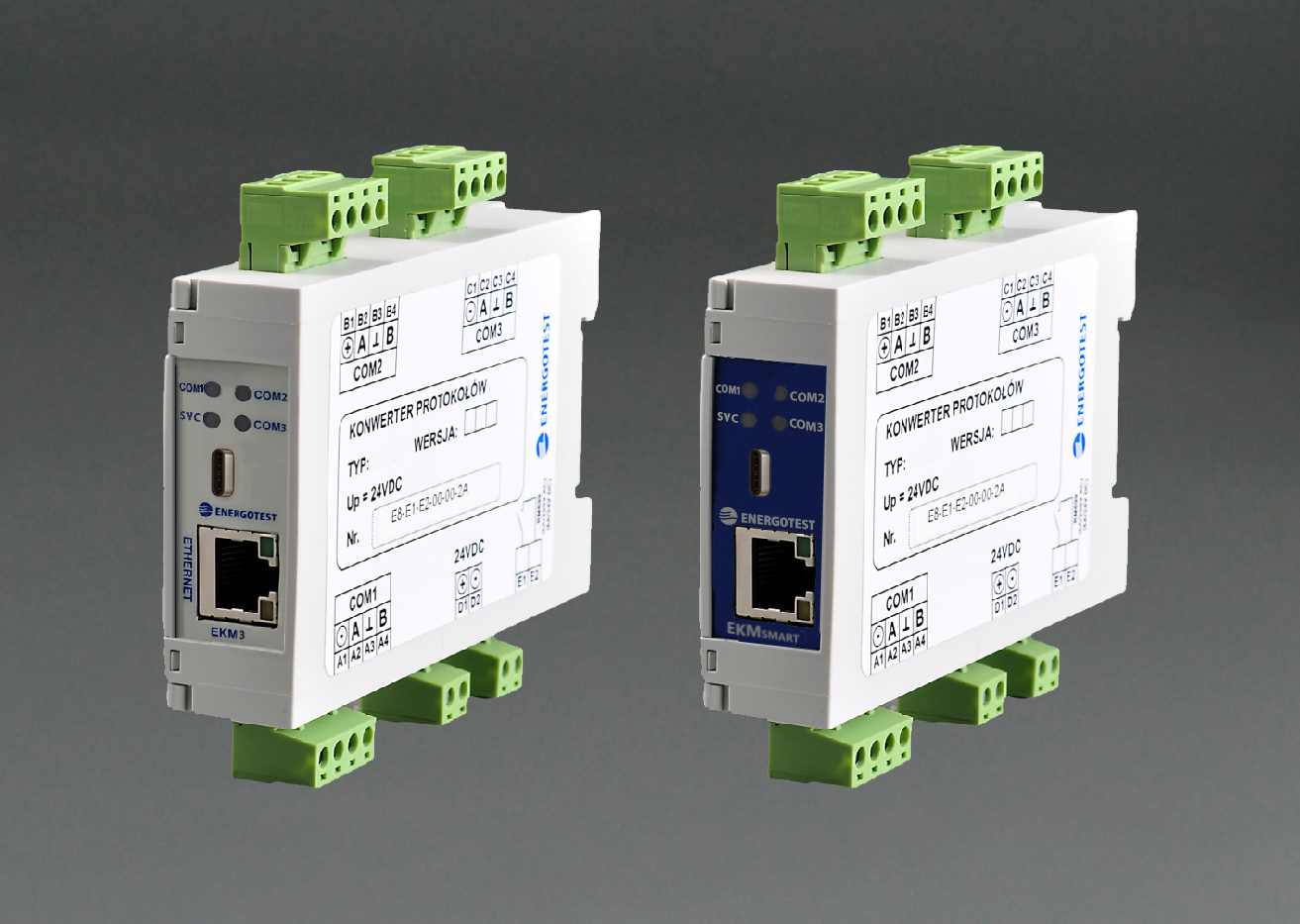 Konwertery protokołów typu EKM służą do podłączania, do sieci Ethernet, urządzeń wyposażonych bazowo wyłącznie w port szeregowy RS485.