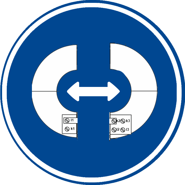 - IO-135-D - przeznaczony do zakładania na istniejący pojedynczy kabel trójżyłowy o maksymalnym przekroju żył roboczych 3x500 mm2 – zaciski wyjściowe k1-l2, k3-l3,