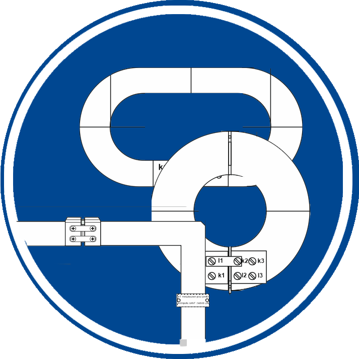 - IO-100-N (IO-11) - przeznaczony do zakładania na pojedynczy kabel trójżyłowy o maksymalnej zewnętrznej średnicy kabla 100 mm, zaciski wyjściowe k1-l1, k2-l2,